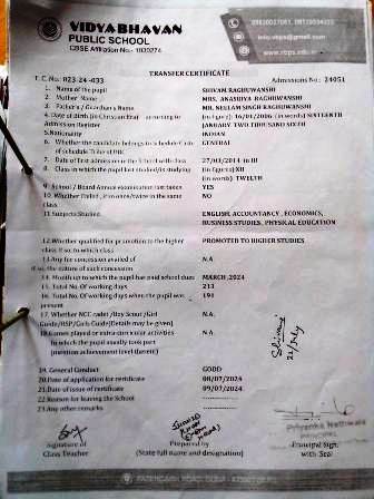 | 31 | 08.07.24 | 202324-033 | SHIVAM RAGHUWANSHI | XII PASS | Download |
