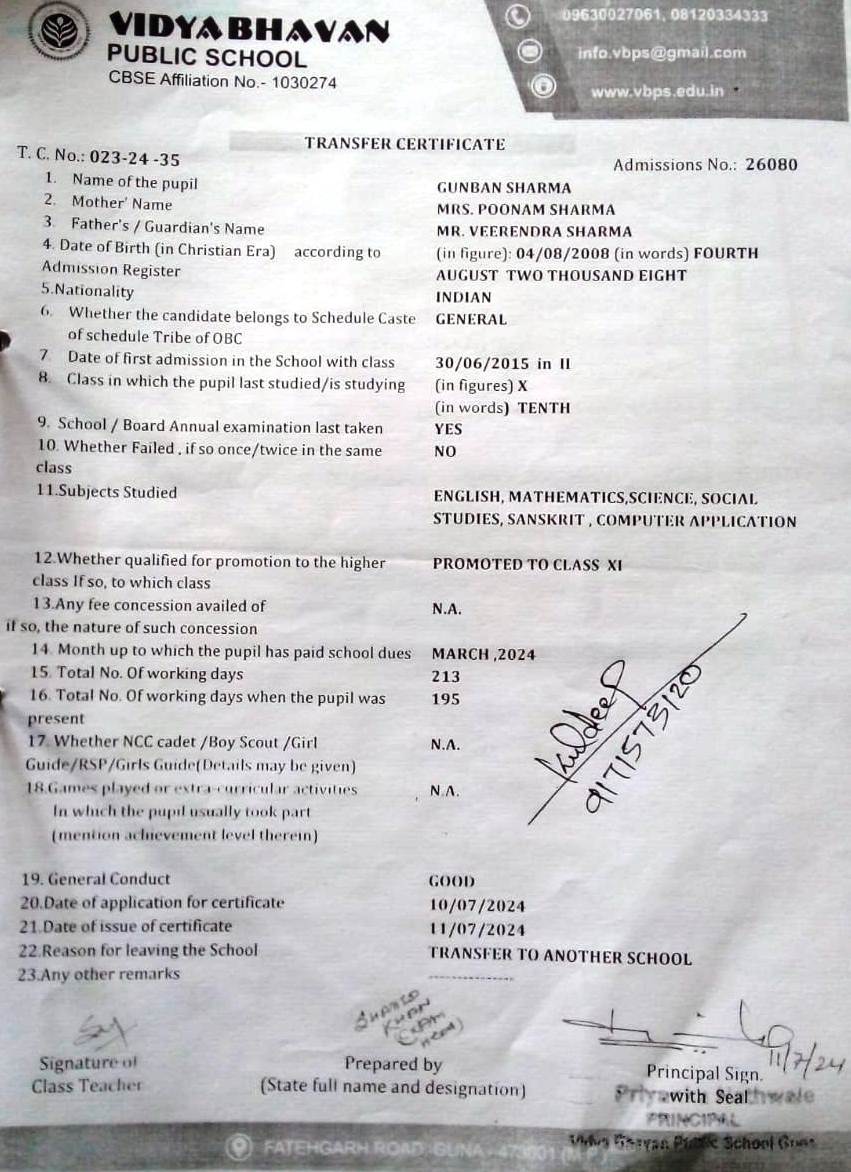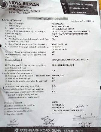 | 23 | 10.04.25 | 24-25023 | TARUN AHIRWAR | XI | Download |