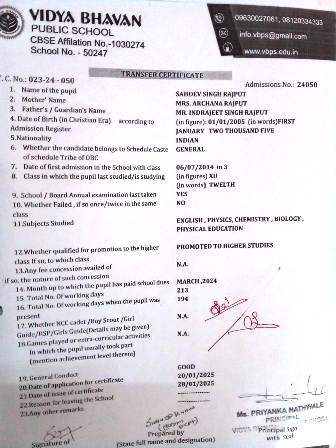 | 76 | 06.08.25 | 24-25076 | VINAYAK SINGH | XII PASS | Download |