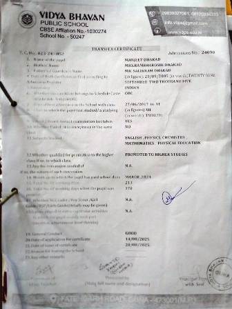 | 77 | 07.08.25 | 24-25077 | HARDIK LODHI | XI PASS | Download |